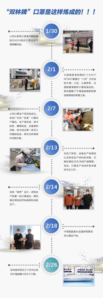将在未来三个月内向宁海分批捐赠总计100万个口罩抗疫。